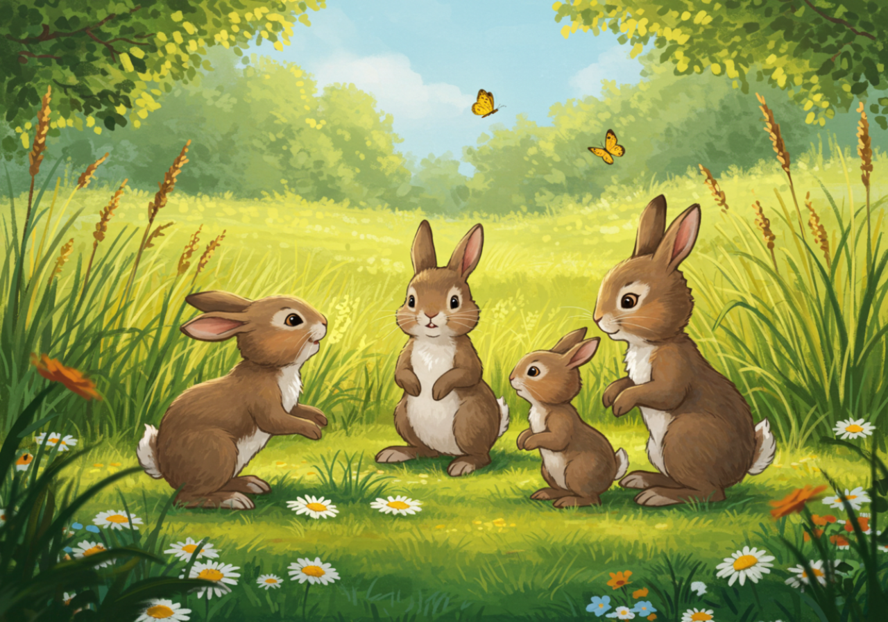 Deep under the meadow, rabbits are always busy! Some dig tunnels, others make soft nests, and a few stand guard to warn the rest if danger comes. Every rabbit has a job — and every job matters.